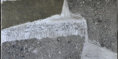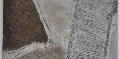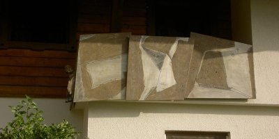 Kompositionen in Asche und Kohle auf Aluminium 70 x 70 x 3 cm