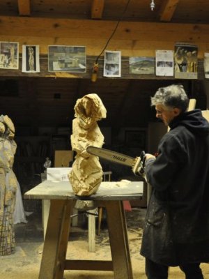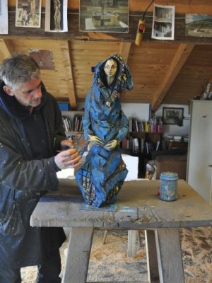Maria, Lindenholz gefasst, Kettensägearbeit, Höhe 75 cm
