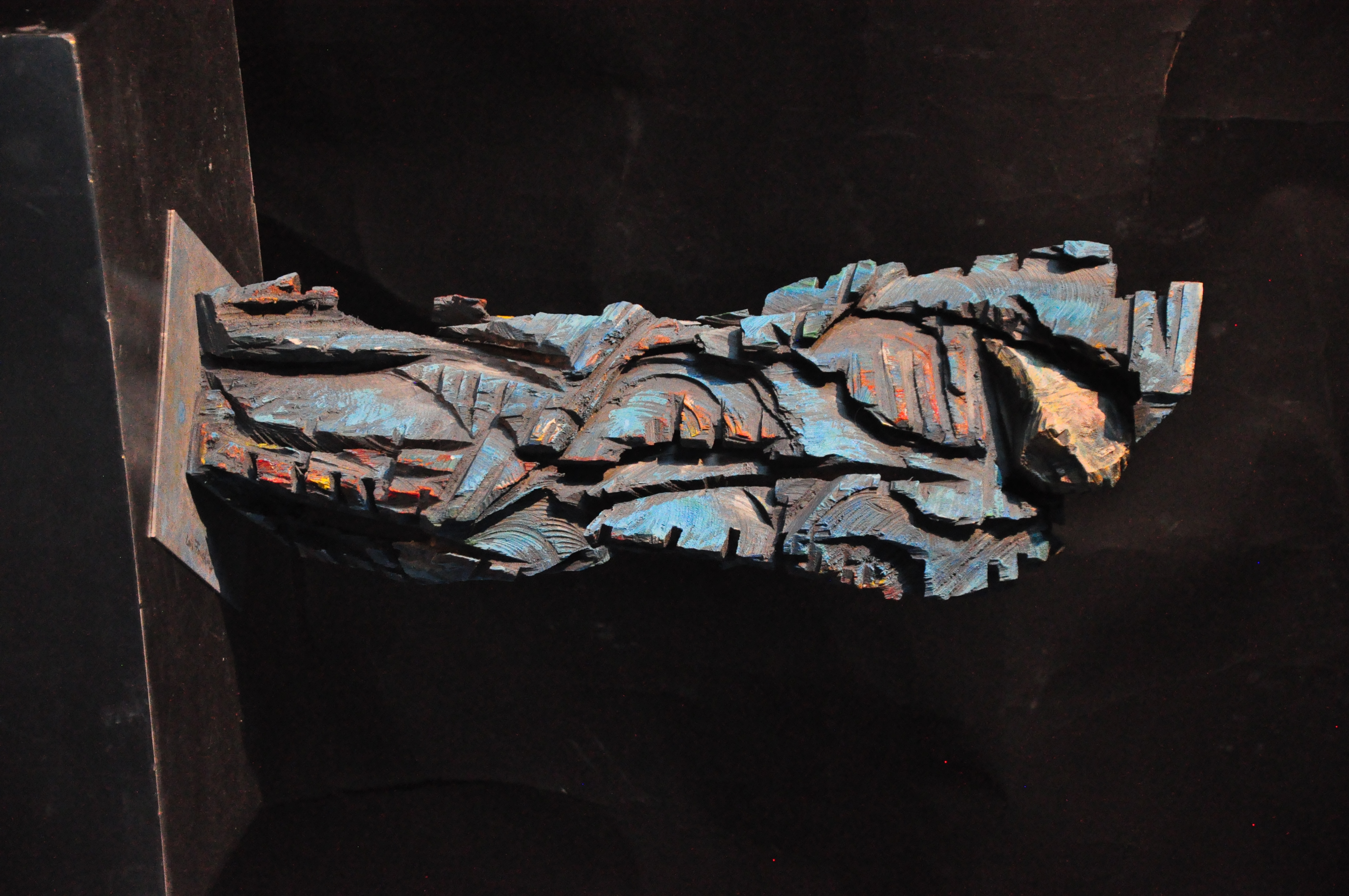 H 54 cm , Lindenholz gefasst, auf Metallplatte