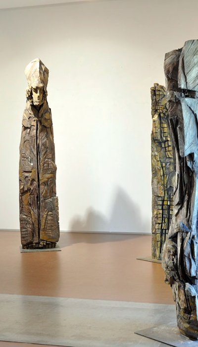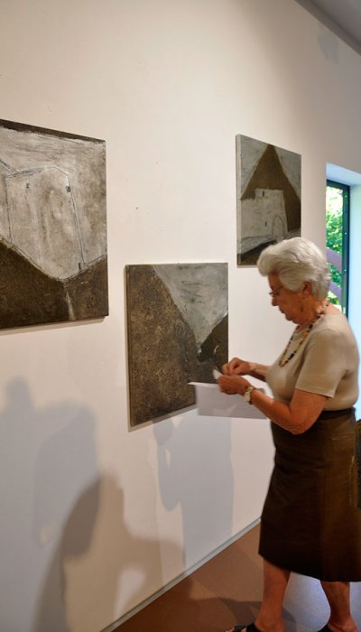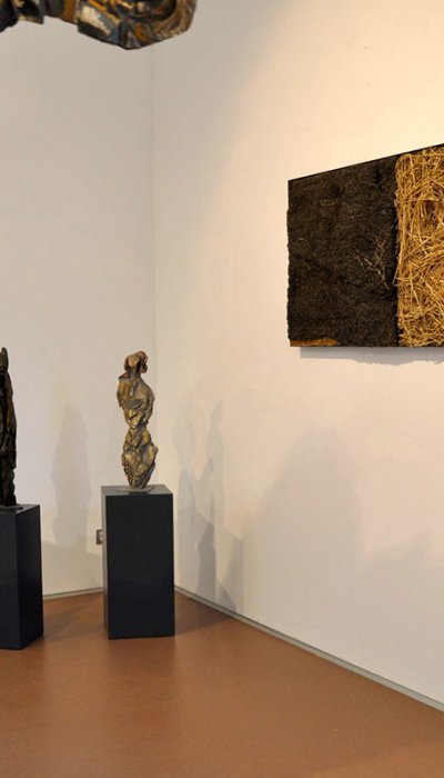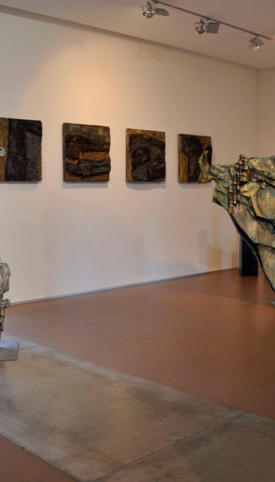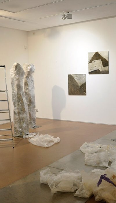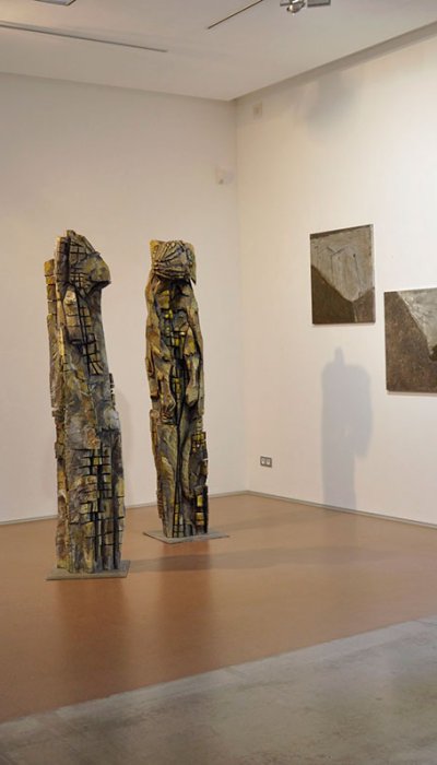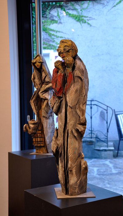 Im Herbst 2014 stellte hier Lois Fasching Holzskulpturen und Asche-Kohle auf Aluminiumhintergrund Bilder aus.
