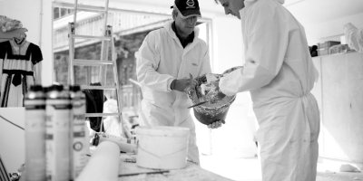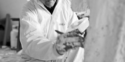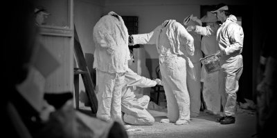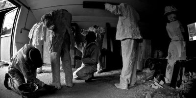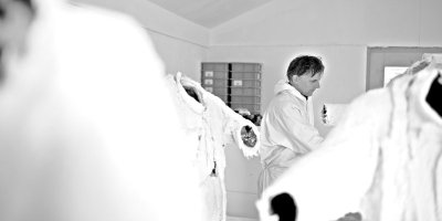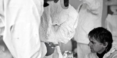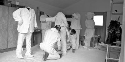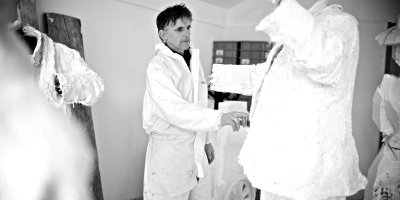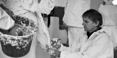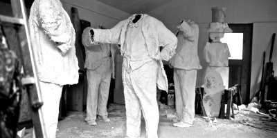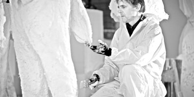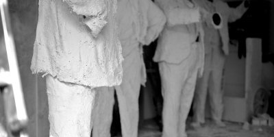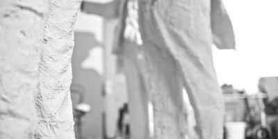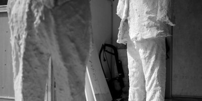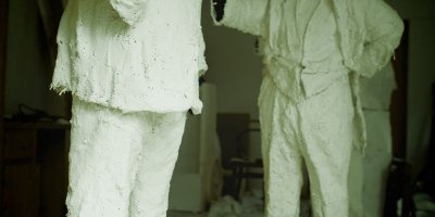 Das Fixieren der Kleider meines Vaters Alois Fasching, erzeugt eine starke physische Präsenz. Kopf und Hände ausgespart, ändern nichts daran, er steht einfach da, auch wenn Hose, Schuhe und Sakko oberflächlich und vom Material her verändert sind. Die Hülle wird zur Skulptur.