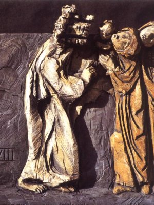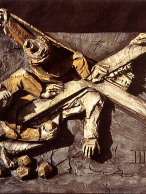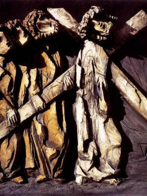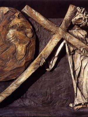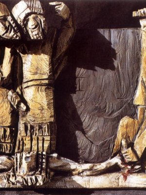 Im Jahre 2000, im Auftrag der kath. Pfarre Debant unter Pfarrer Toni Mitterdorfer entstanden. Holz-Kettensäge, 95 x 95 x 10 cm