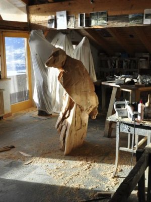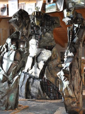 Ikonografische Skulpturenreihe entstand zwischen 2010 und 2014 in Holz, Höhe bis 210 cm mit Kettensäge geschnitten und gefasst.