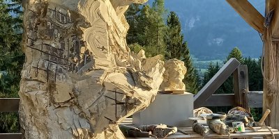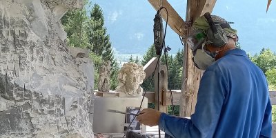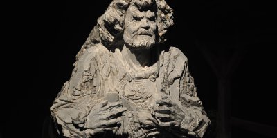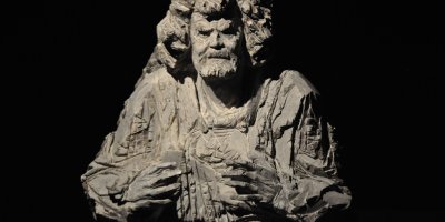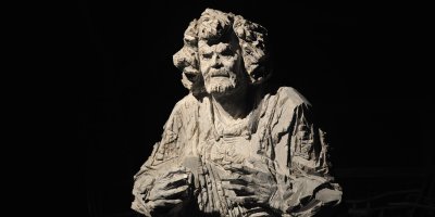 Reinhold Messner larger than life in dolomite - climbing stone from Reinhold Messner's homeland.